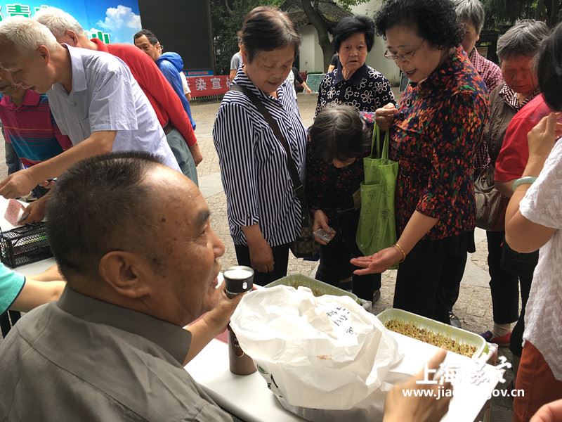 街道妇联精心组织梅园社区“妇女之家”的品牌项目“会呼吸的楼组”来到活动现场,她们为活动带来的是低碳环保的“家庭自制豆芽”。小小的豆子经过几天的浸泡,已经长出了郁郁葱葱半指高的小豆芽。翠绿鲜嫩的小豆芽,引来了现场群众的围观和好奇。大家很是兴奋,纷纷询问老师豆子是怎么发的,需要用什么道具,在什么条件才会发芽。老师很详细的介绍了豌豆发芽的过程,热心回答了阿姨们的提问,并现场赠送一包豆子,让她们回去试试自己发豆芽。