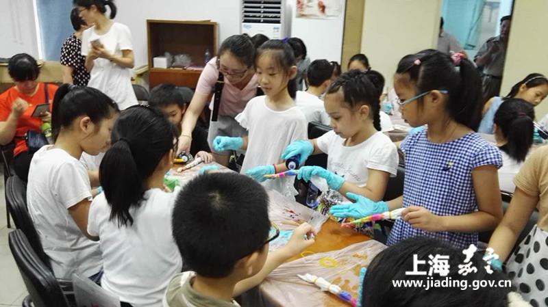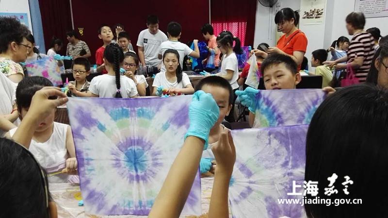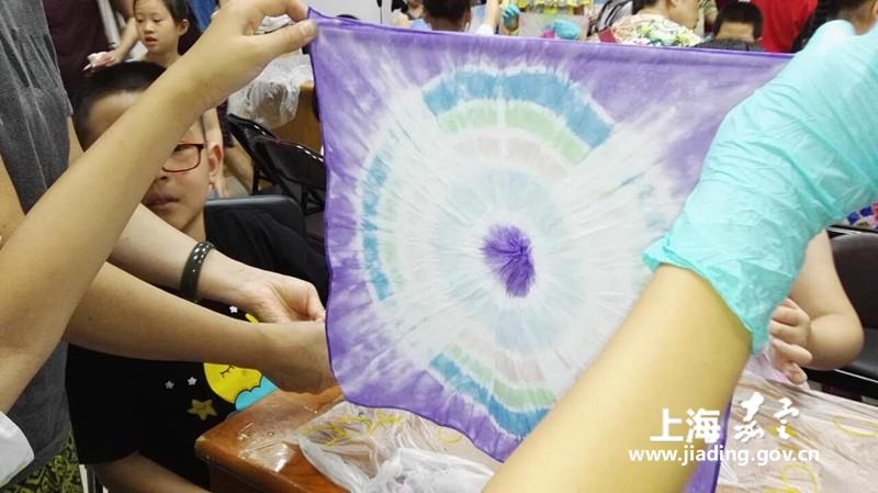 8月8日上午,嘉定镇街道银杏社区妇联邀请朱依婧老师为社区的孩子们举办了一堂绚烂多姿的手工扎染课,居委活动室内70多个小朋友冒着酷暑前来参加。