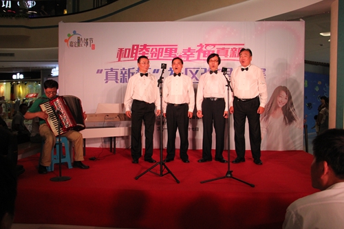2015年的双节从7月开始到10月结束,历时四个月,共设计了六个活动篇章,即开幕篇、“衣•冠礼乐”篇、“食•指大动”篇、“住•亦无忧”篇、“行•远升高”篇和“乐•意无限”篇。弹唱大赛虽然是“乐•意无限”篇的一个章节,却是整个睦邻节的轴心项目。这次他们以“铭记历史、缅怀先烈、珍爱和平、开创未来”为主题,家庭文化为载体,组织弹唱大赛,让社区居民们通过独唱、对唱、小组唱、自弹自唱或电子琴、吉他、二胡、小提琴、手风琴演奏等形式,共同纪念中国人民抗日战争暨世界反法西斯战争胜利70周年。男声小组唱《保卫黄河》铿锵有力,展现了先辈们在青纱帐里、万山丛中,为保卫黄河、保卫全中国而战斗的豪情壮志。《让我们荡起双桨》的优美旋律,抒发了社区居民对幸福生活感到无比愉悦的真切感受。